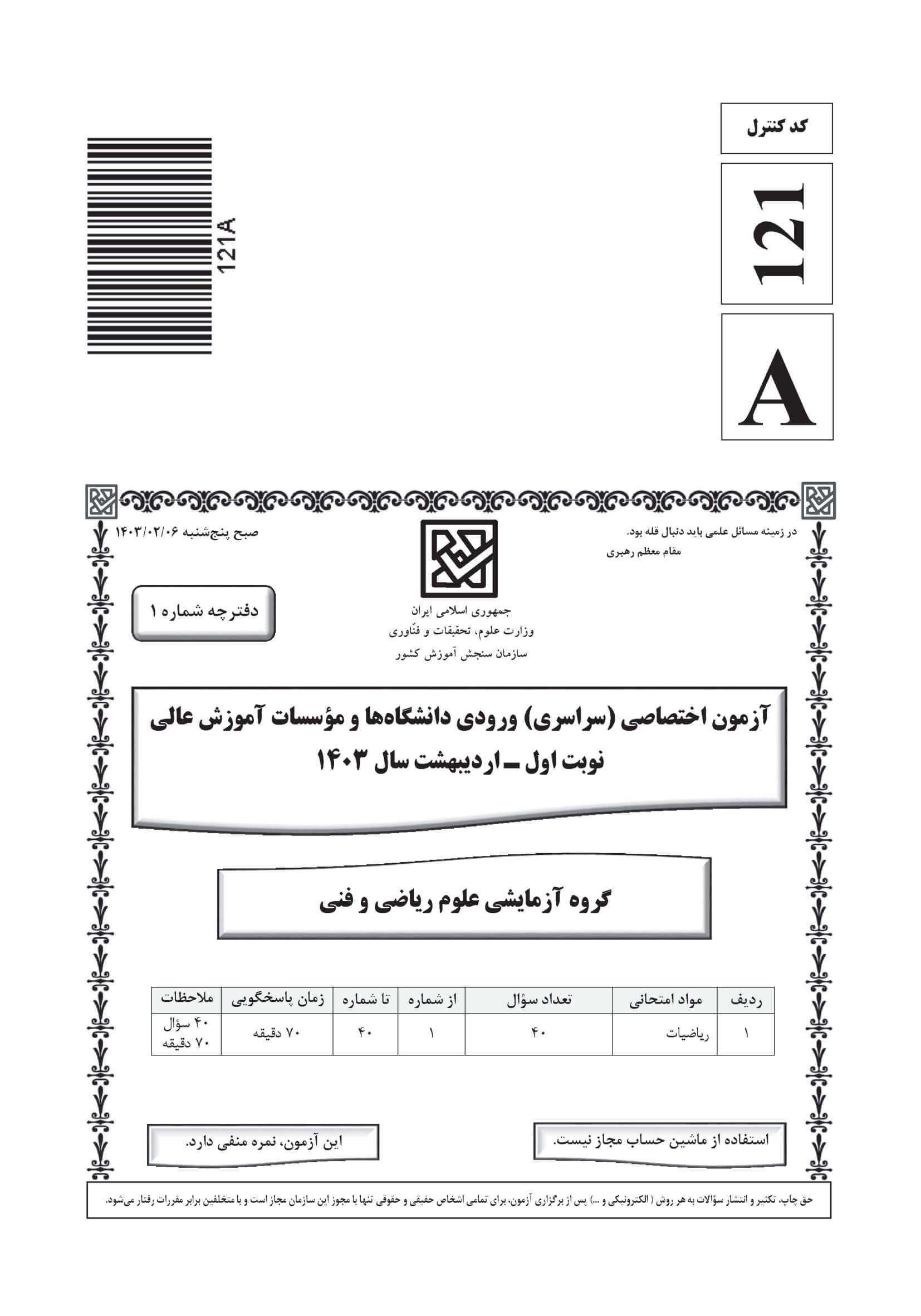ریاضیات - فیزیک - شیمی - تعلیم و تربیت اسلامی - هوش و استعداد معلمی