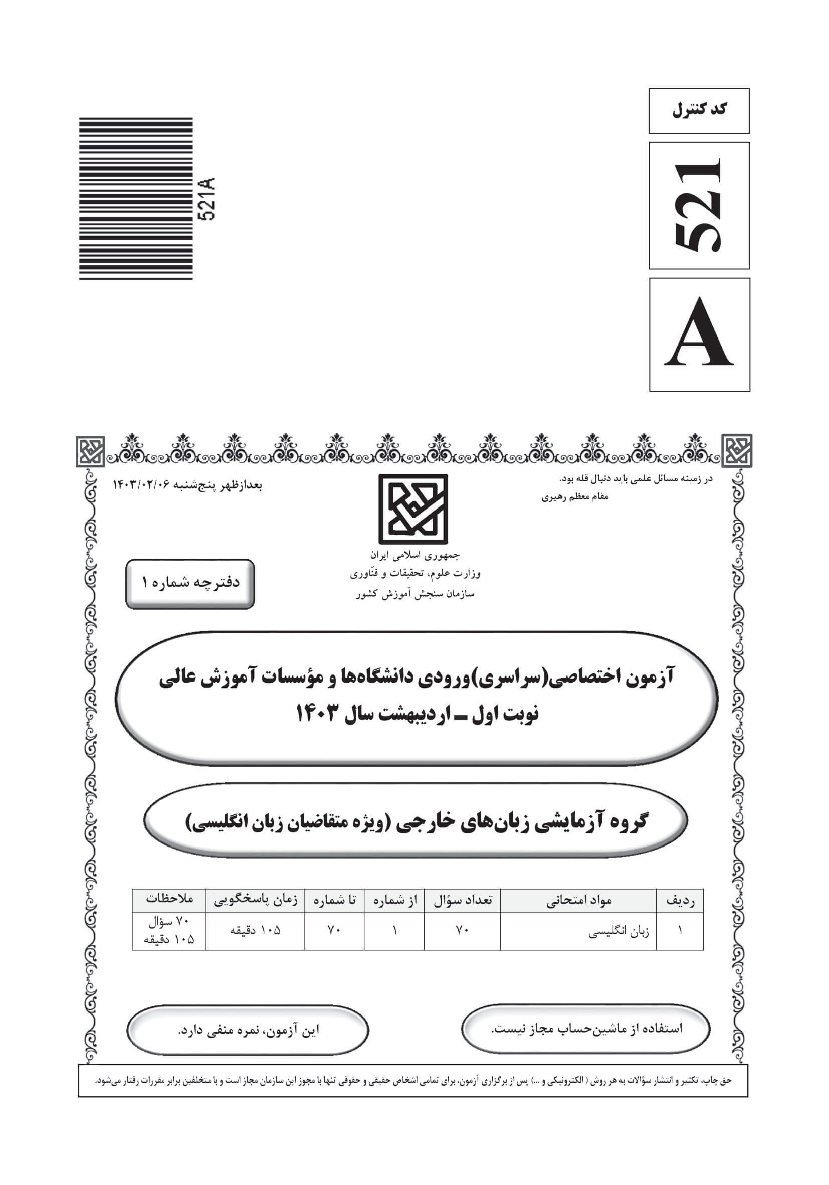 زبان انگلیسی + فرهنگیان نوبت اول 1403